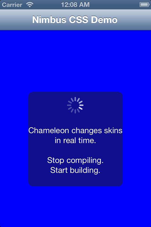 .noticeBox { background-color: rgba(32, 32, 32, 0.5); border-radius: 10px; border: none; } UIActivityIndicatorView { -ios-activity-indicator-style: white-large; -ios-autoresizing: left right bottom; }